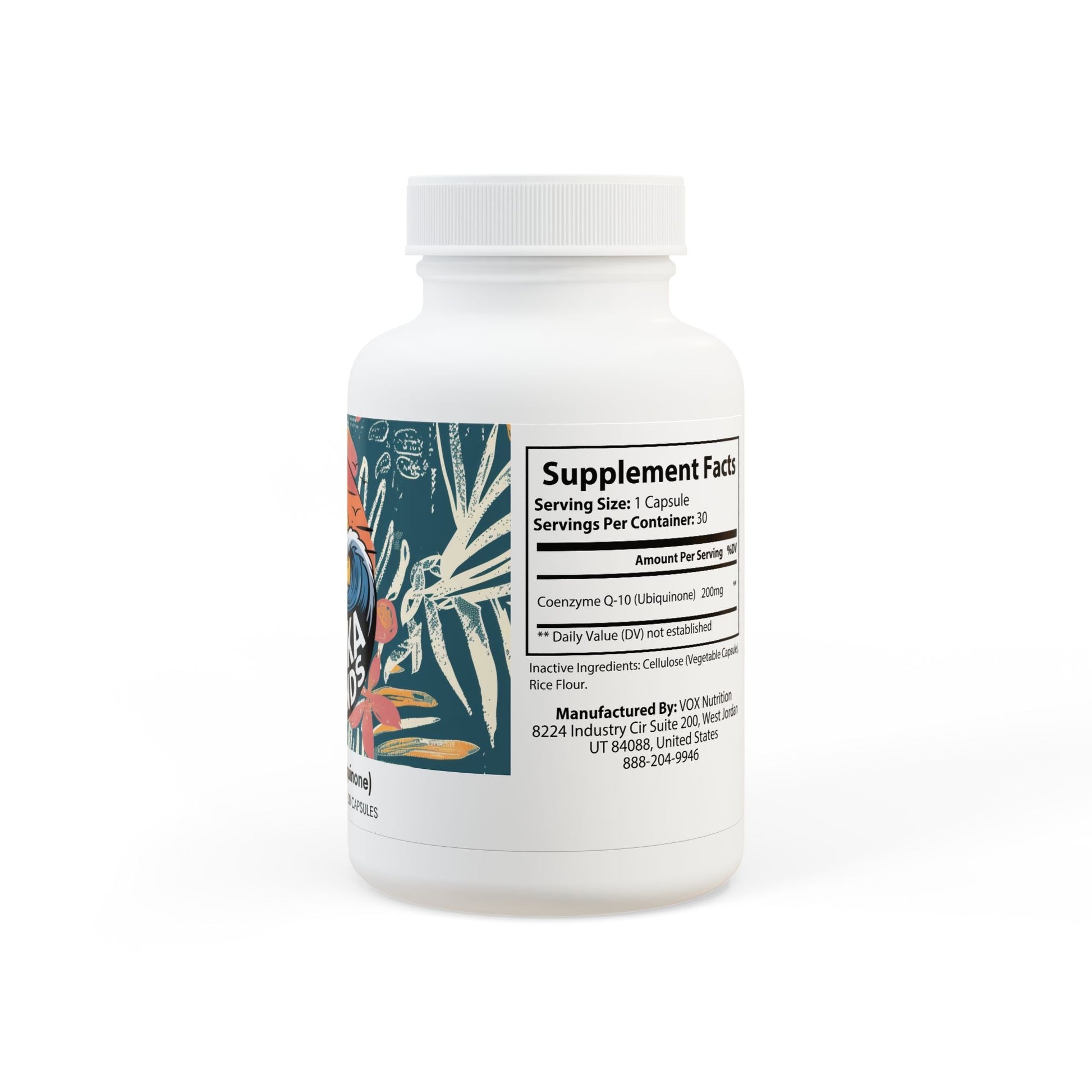 Ingredients: Coenzyme Q-10 (Ubiquinone). Inactive Ingredients: Cellulose (Vegetable Capsule), Rice Flour.
